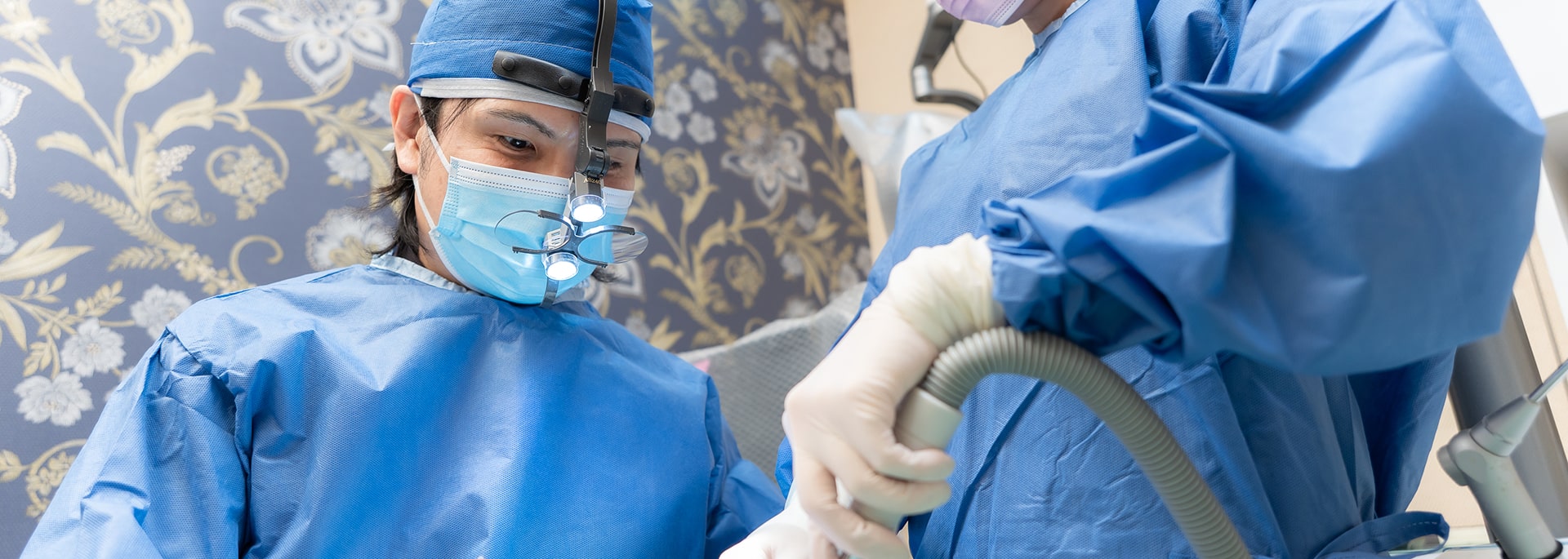 歯科麻酔医による安全性の高い点滴麻酔を使用し、眠っているような状態で手術を受ける事も可能です。歯科麻酔の専門機関、Anes Ventures 代表でもある北浜誉先生(日本歯科麻酔科学会所属)と連携をしています。